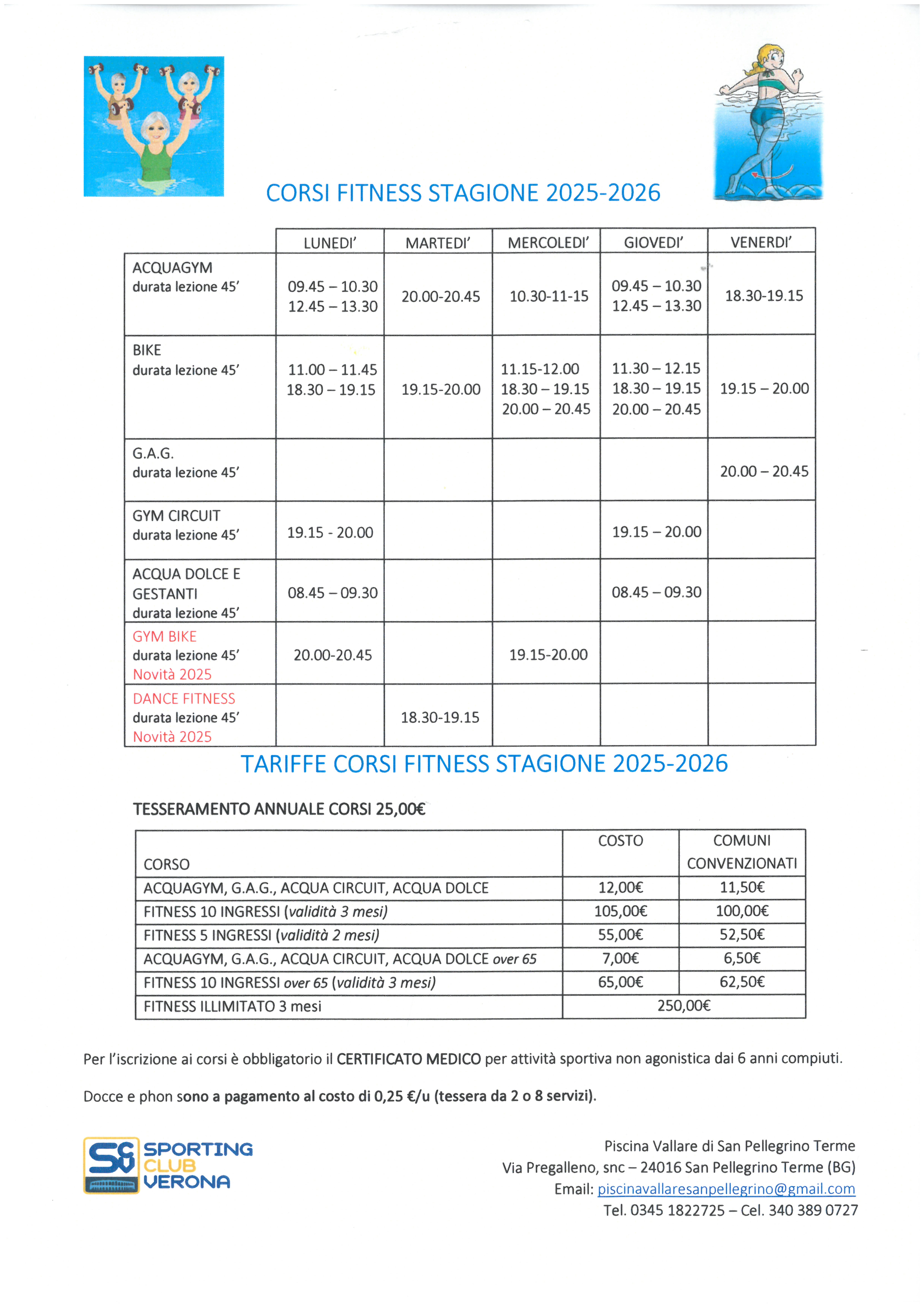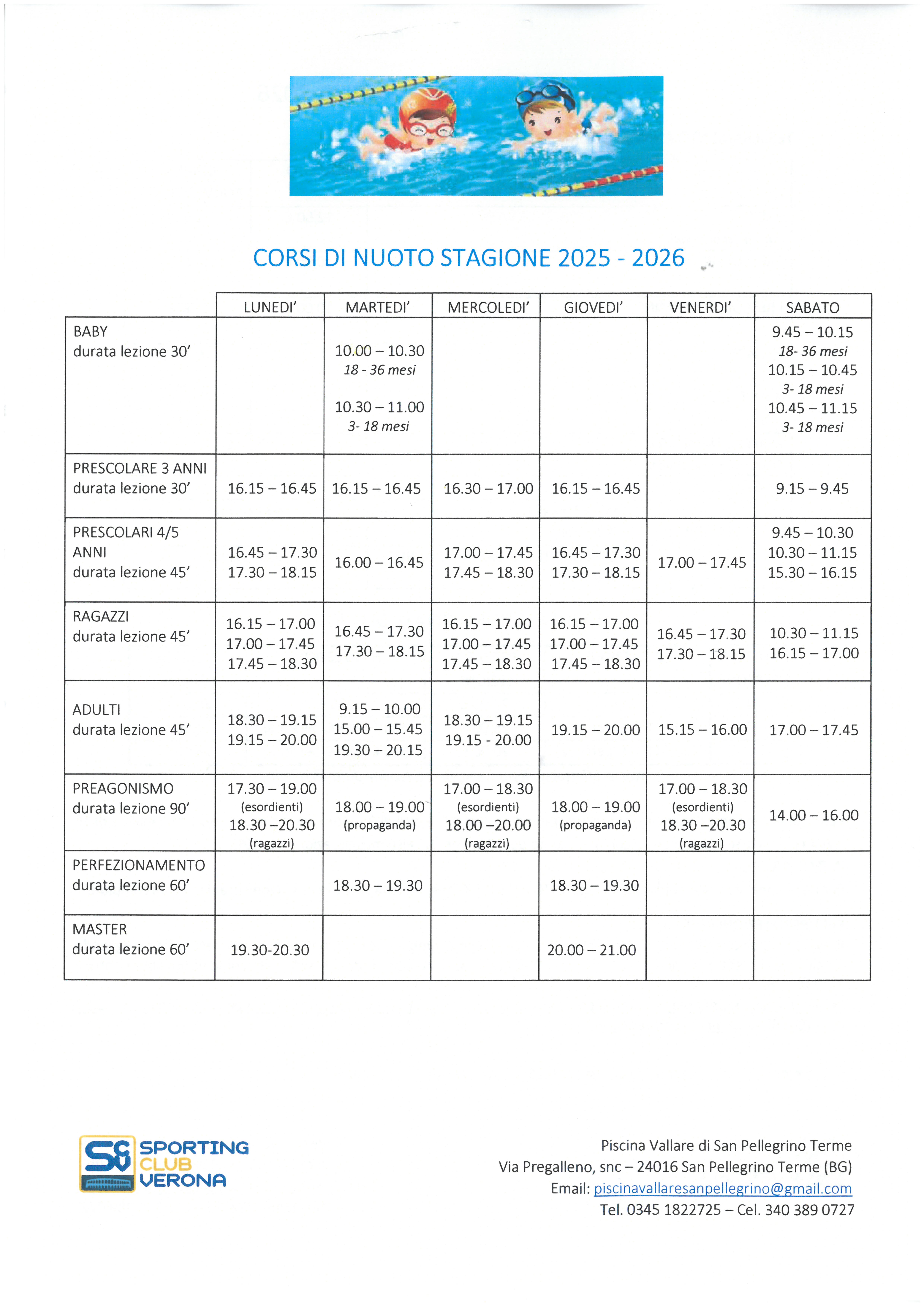 LOCANDINE CORSI, NUOTO LIBERO E TARIFFE